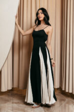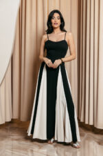Φόρεμα maxi μαύρο με εκρού λεπτομέρεια. Διαθέτει αυξομειώμενες ράντες και κλείνει με φερμουάρ. Ένα φόρεμα άνετο και μοναδικό για απογευματινές αλλά και βραδινές ώρες.