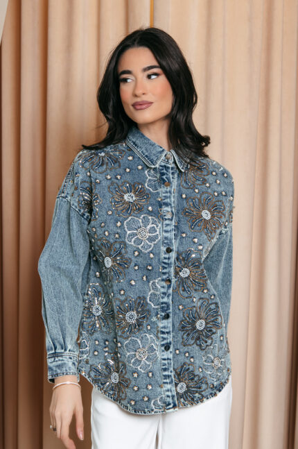 Τζιν τζάκετ oversized με παγιέτες και χάντρες