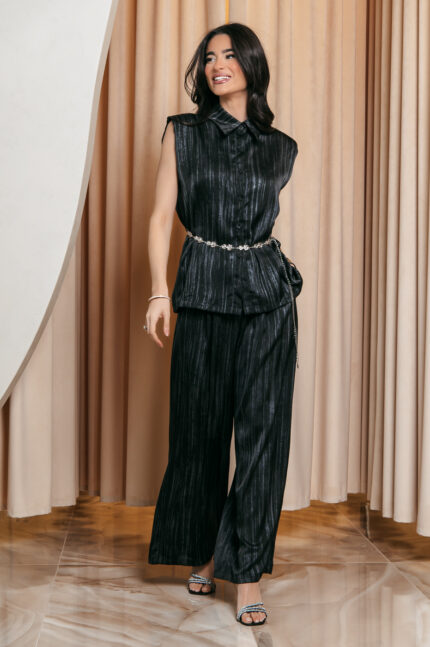 Φόρεμα midi κιπούρ μαύρο με ζώνη