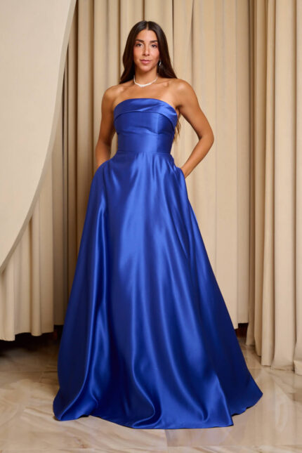 Φόρεμα maxi κλος με φάσα στο μπούστο μπλε ρουά