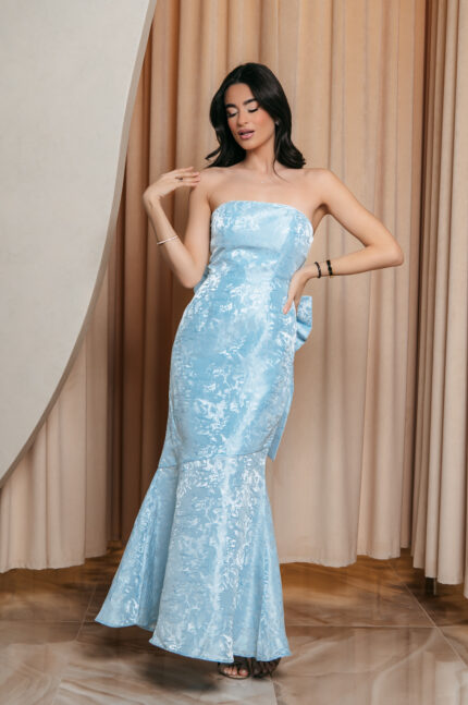 Φόρεμα maxi στράπλες baby blue με αποσπώμενο φιόγκο