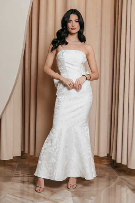 Φόρεμα maxi στράπλες άσπρο με αποσπώμενο φιόγκο