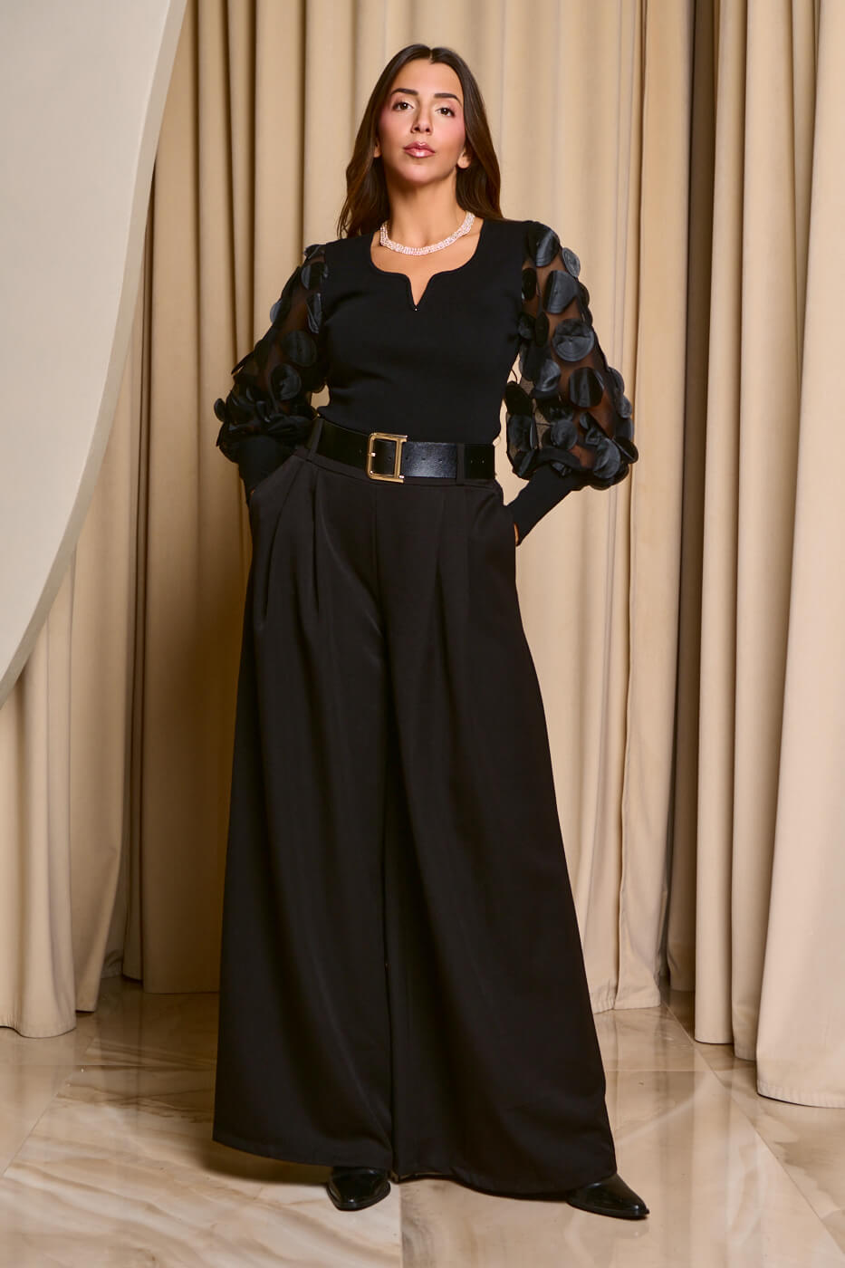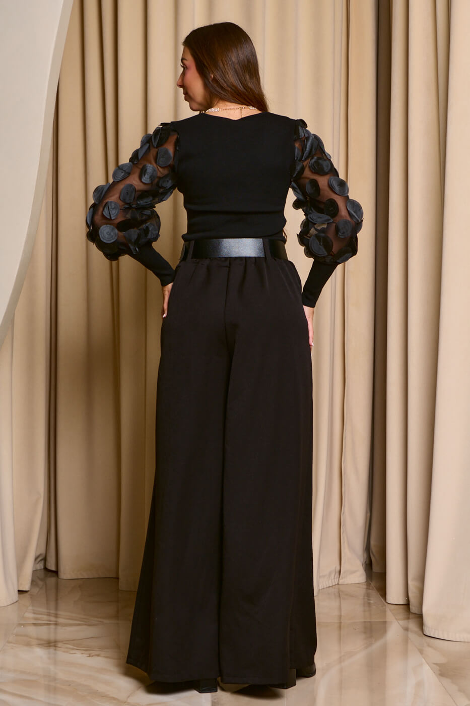 Μπλούζα με see through μανίκια και 3D κύκλους μαύρη