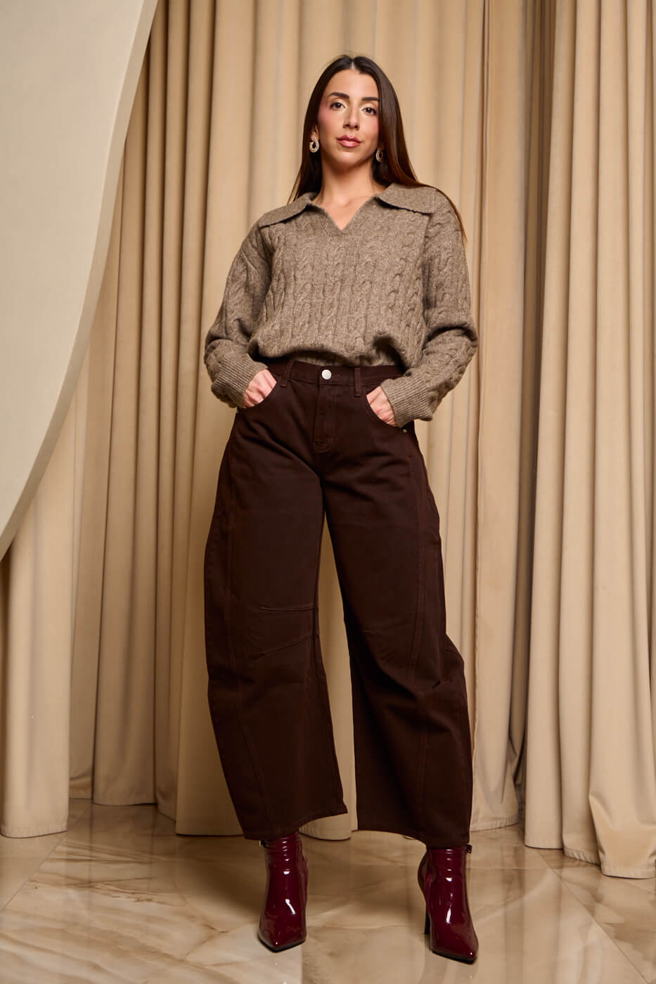 Παντελόνι με πιέτες μπροστά και ζώνη καφέ