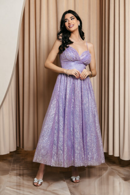 Φόρεμα maxi γαλάζιο με τρισδιάστατο γκλίτερ. Ένα εντυπωσιακό φόρεμα με ρομαντική διάθεση καλυμμένο εξ ολοκλήρου με τρισδιάστατο γκλίτερ σε γαλάζια απόχρωση. Στο πάνω μέρος διαθέτει λεπτές τιράντες, cups και χιαστί κολακευτικό μπούστο. Το κάτω μέρος είναι σε άλφα γραμμή με διπλό εσωτερικό τούλι και φόδρα. Δένει με κορσέ πίσω ενώ πιο κάτω διαθέτει και φερμουάρ. Ιδανικό για εντυπωσιακές και λαμπερές επίσημες εμφανίσεις που τραβούν τα βλέμματα.