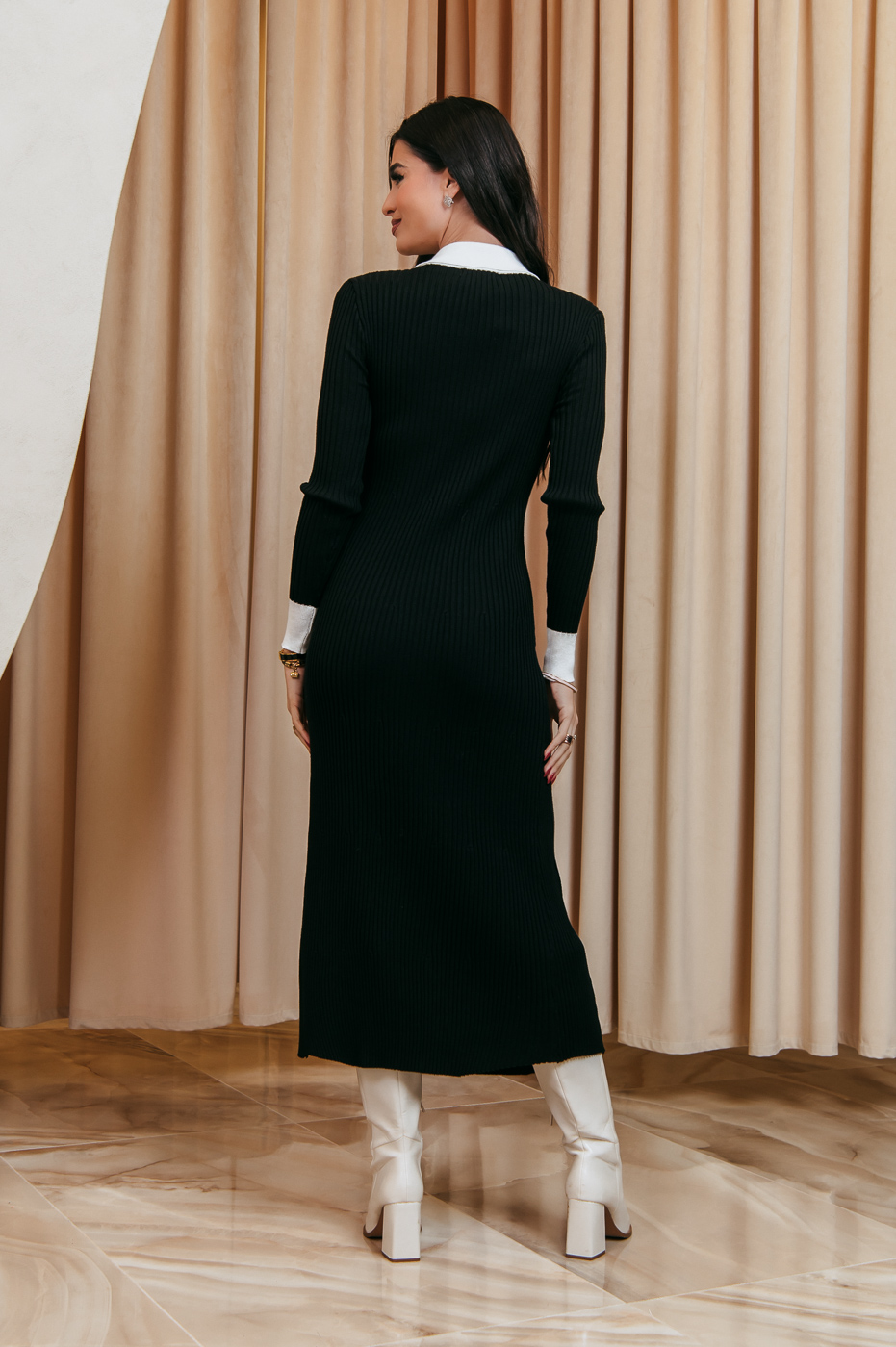 Φόρεμα μαύρο πτι καρό με λευκές λεπτομέρειες
