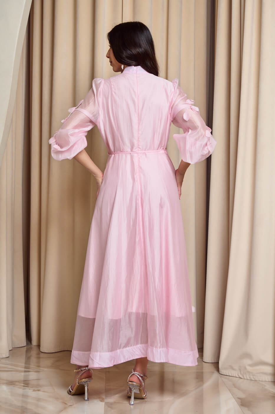 Φόρεμα maxi με 3D λεπτομέρειες baby pink