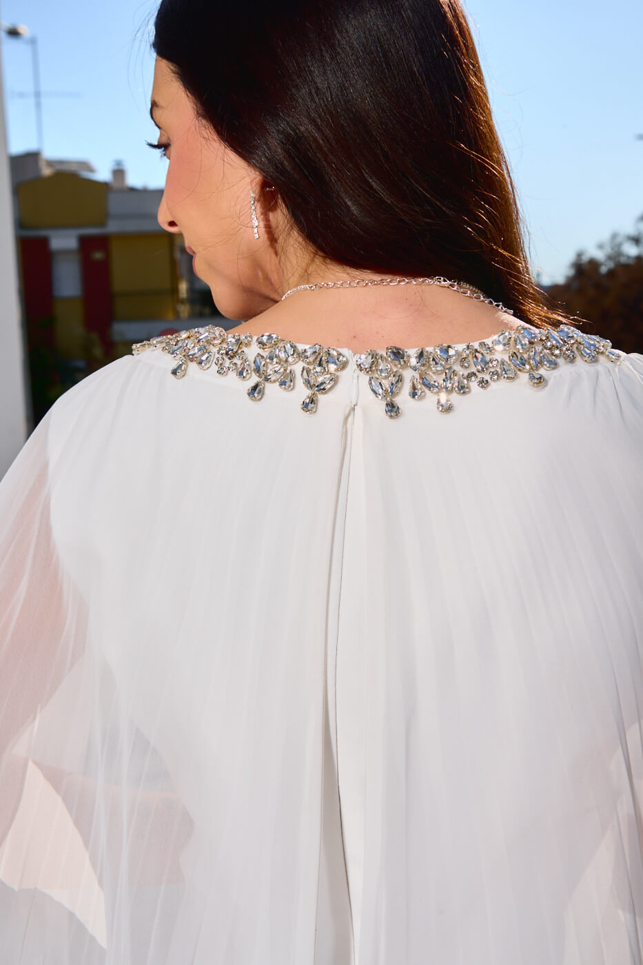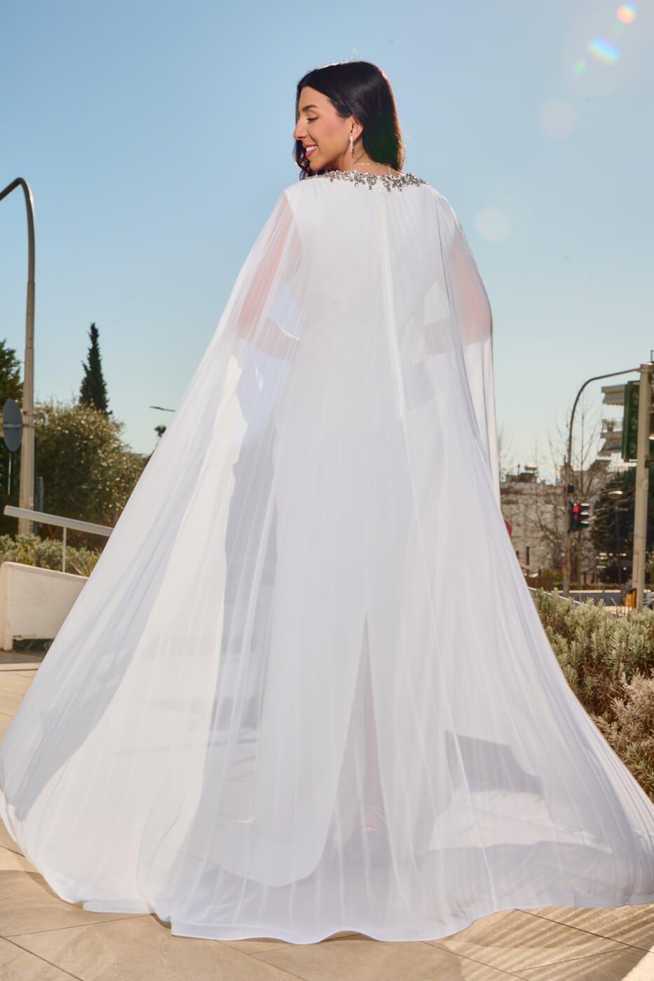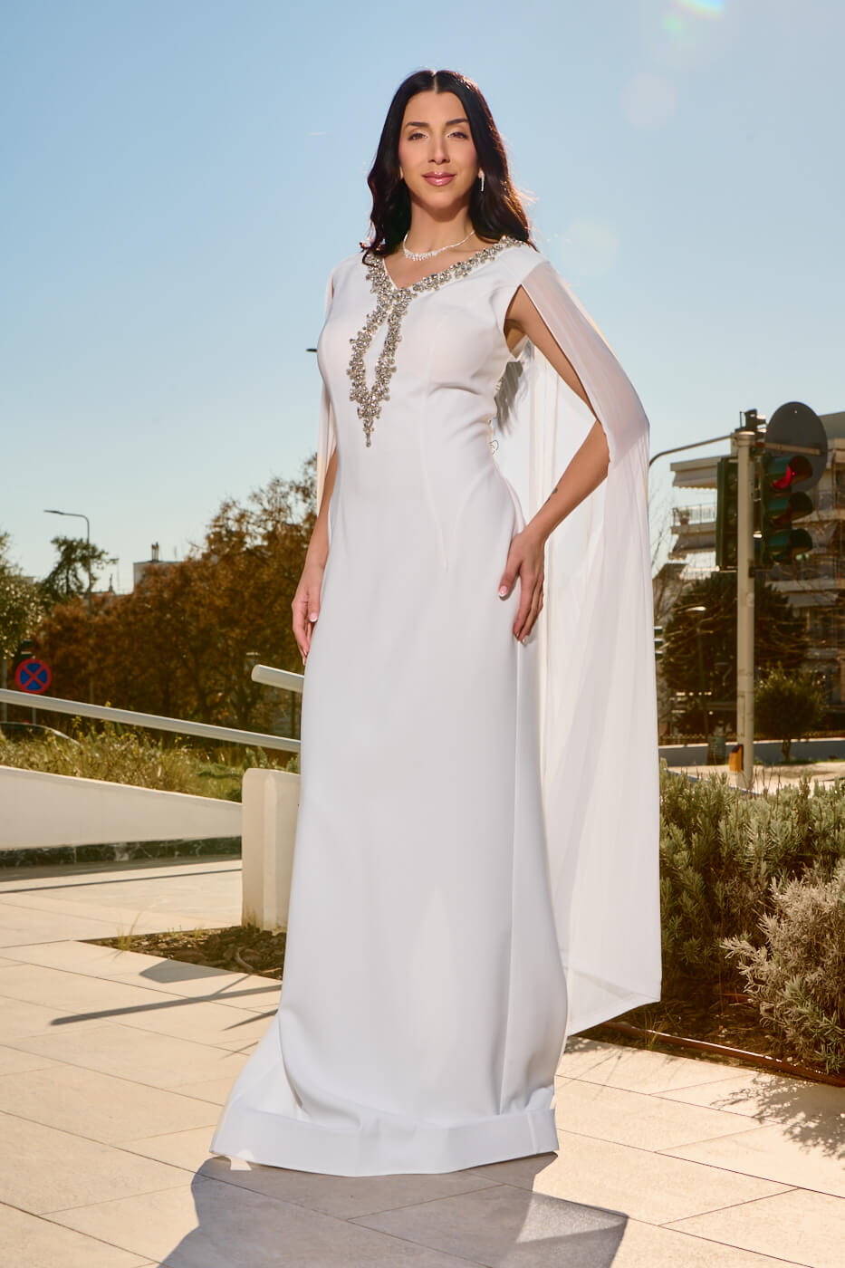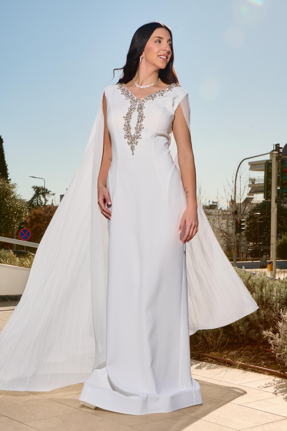 Φόρεμα maxi με διακοσμητικές πέτρες και μπέρτα άσπρο