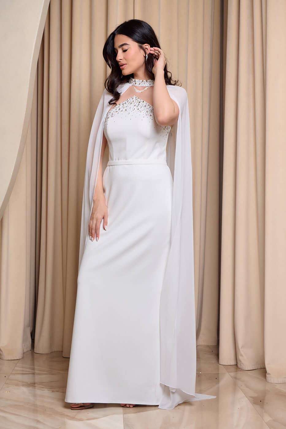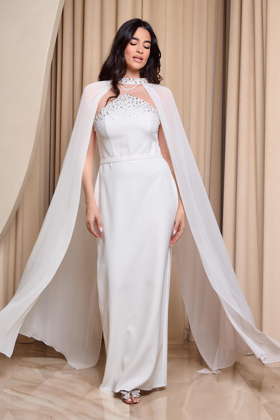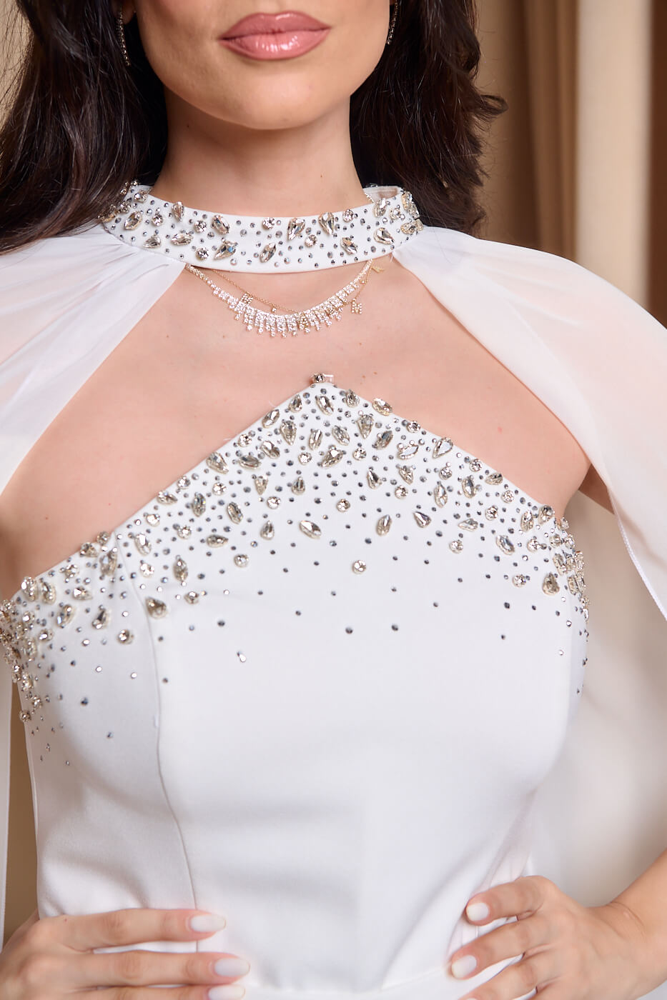 Φόρεμα maxi με πέτρες και αποσπώμενη κάπα άσπρο