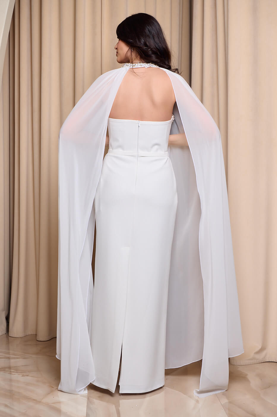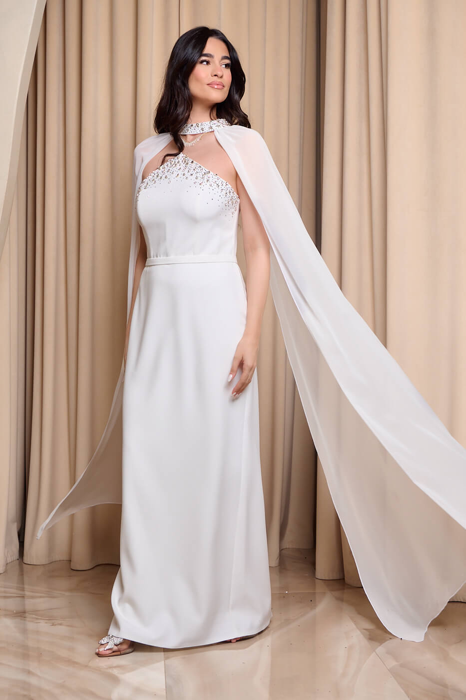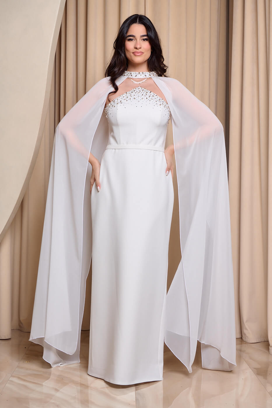 Φόρεμα maxi με πέτρες και αποσπώμενη κάπα άσπρο