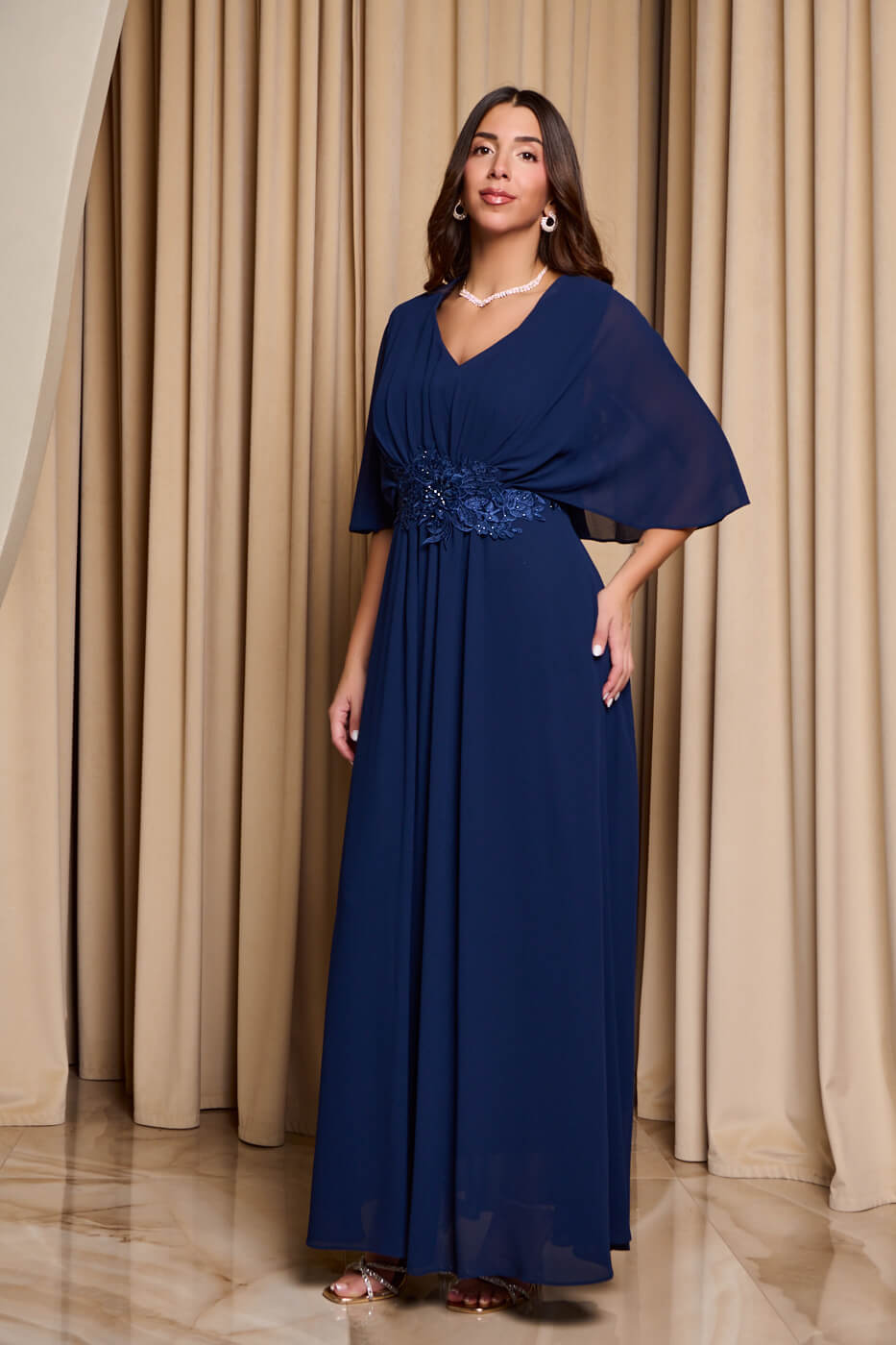 Φόρεμα maxi με πλισέ V ντεκολτέ και λεπτομέρεια με στρας midnight blue