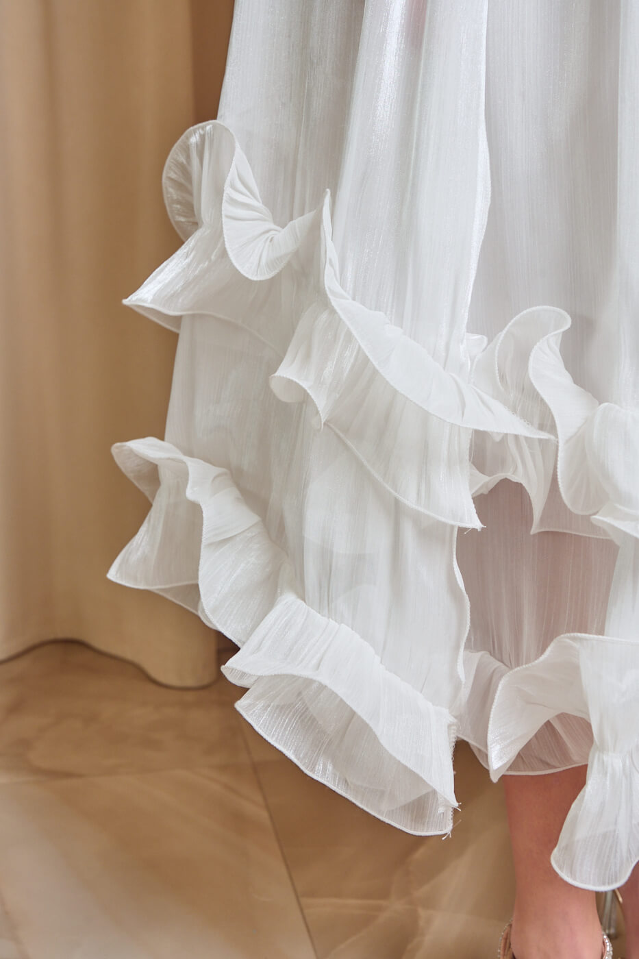 • Φόρεμα midi σατινέ με βολάν και κάπα μπεζ