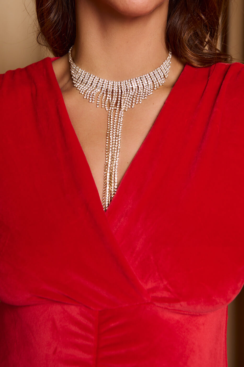 Κολιέ τσόκερ με στρας και κρεμαστή βροχή χρυσό