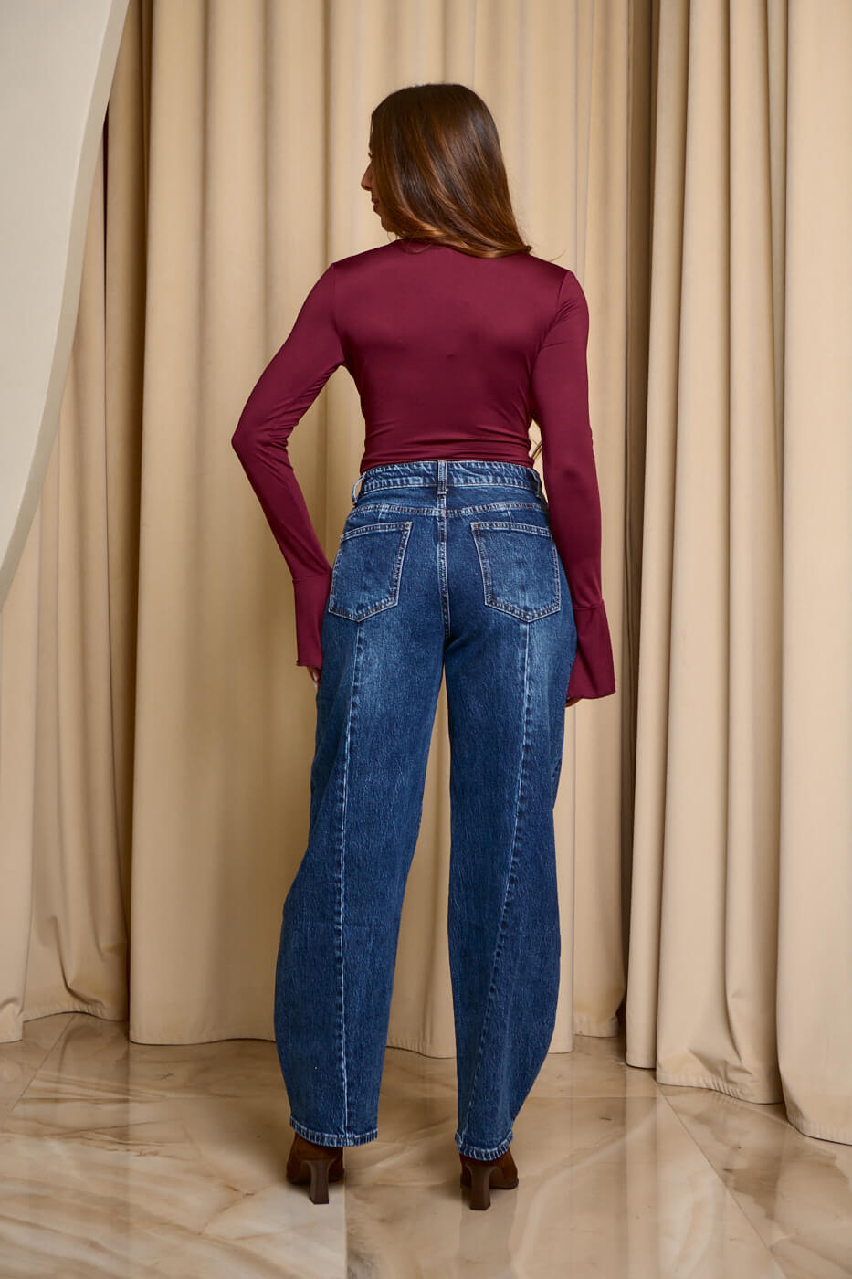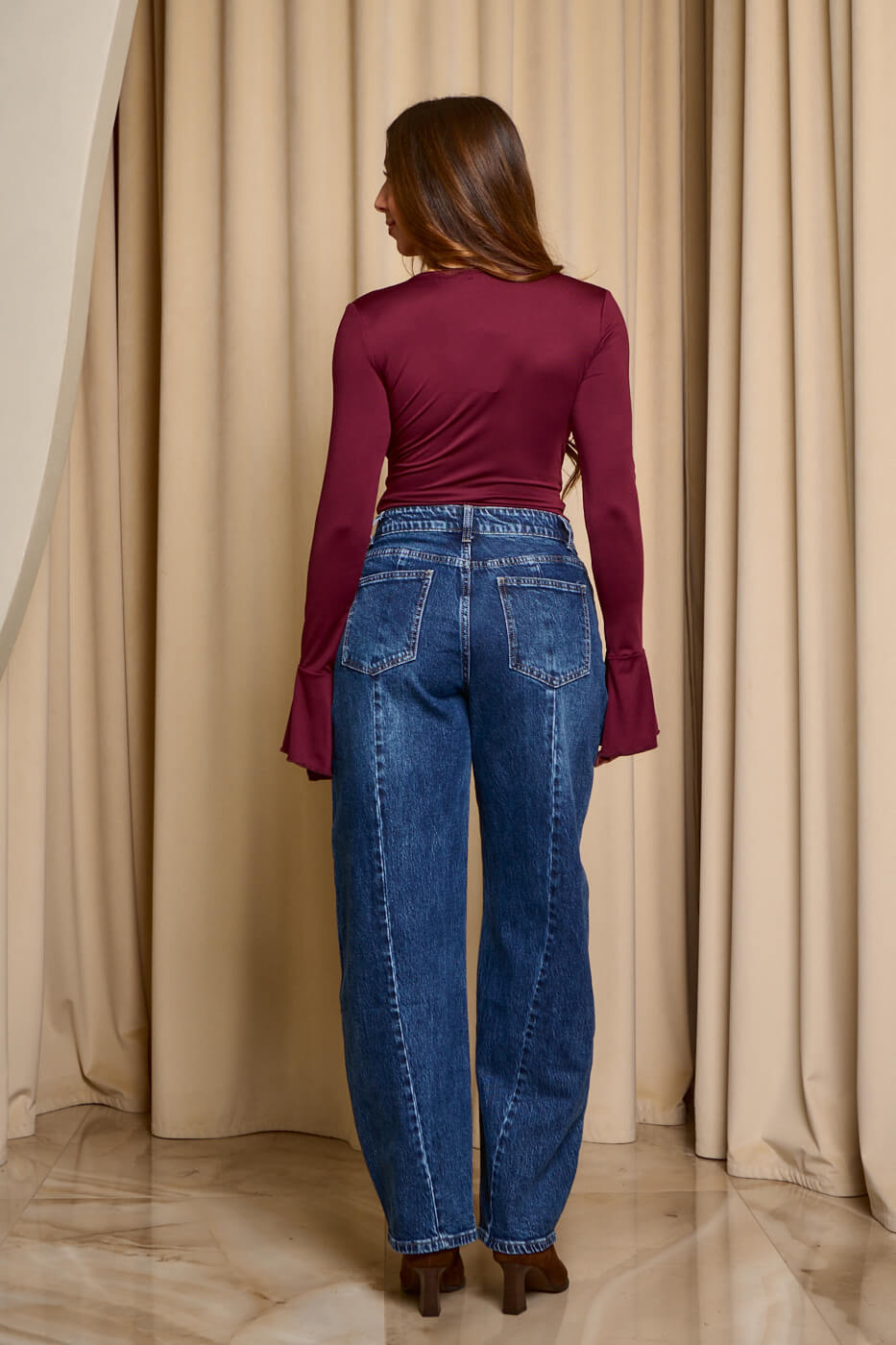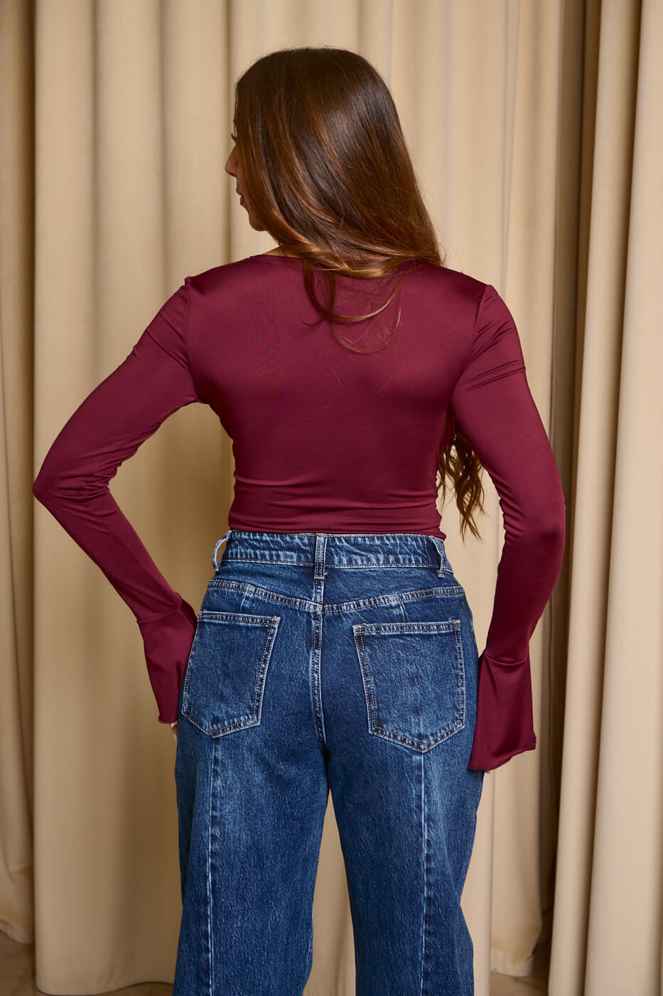 Κορμάκι με διακοσμητικές χρυσές χάντρες μωβ. Ένα ρομαντικό κορμάκι με μακριά μανίκια που στο τελείωμα γίνονται καμπάνα. Με διακοσμητικές χάντρες στην μέση και σούρες που του δίνουν έξτρα στυλ. Διαθέτει cups και βαθύ V ντεκολτέ.