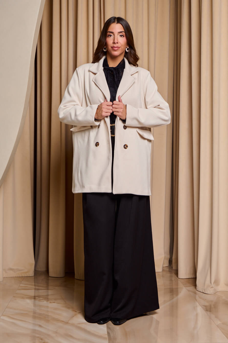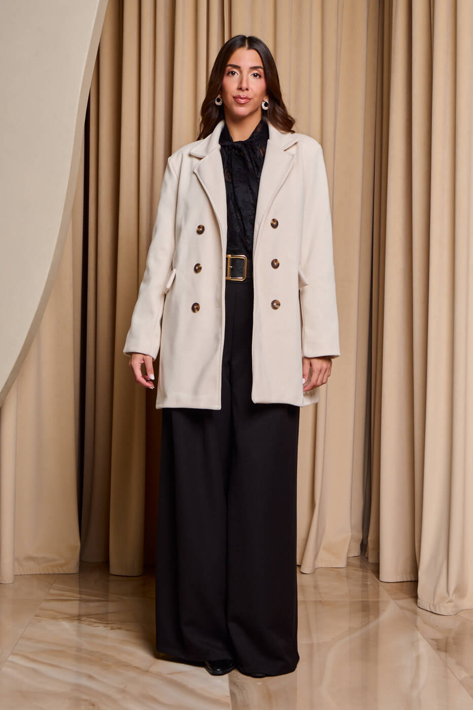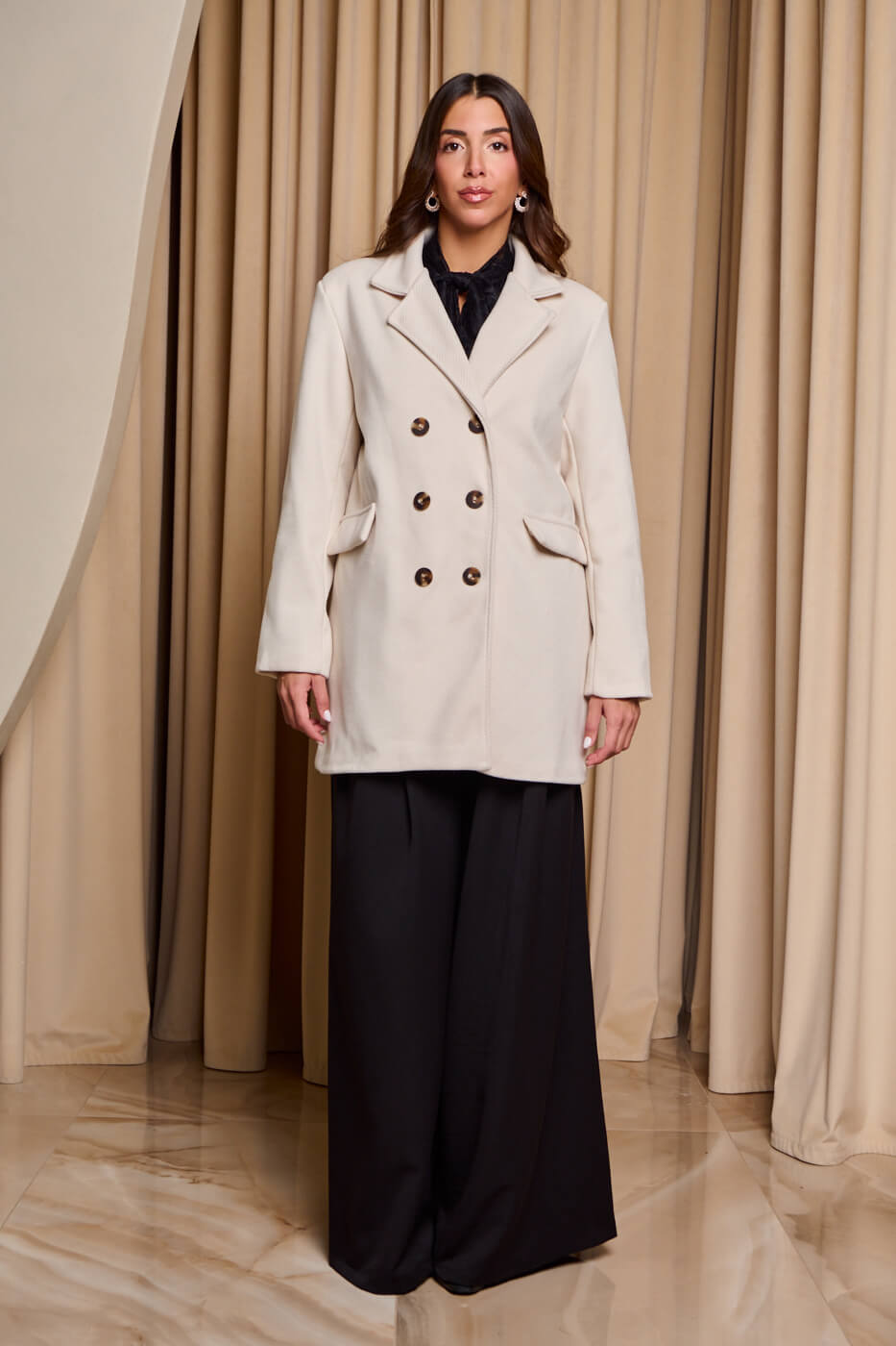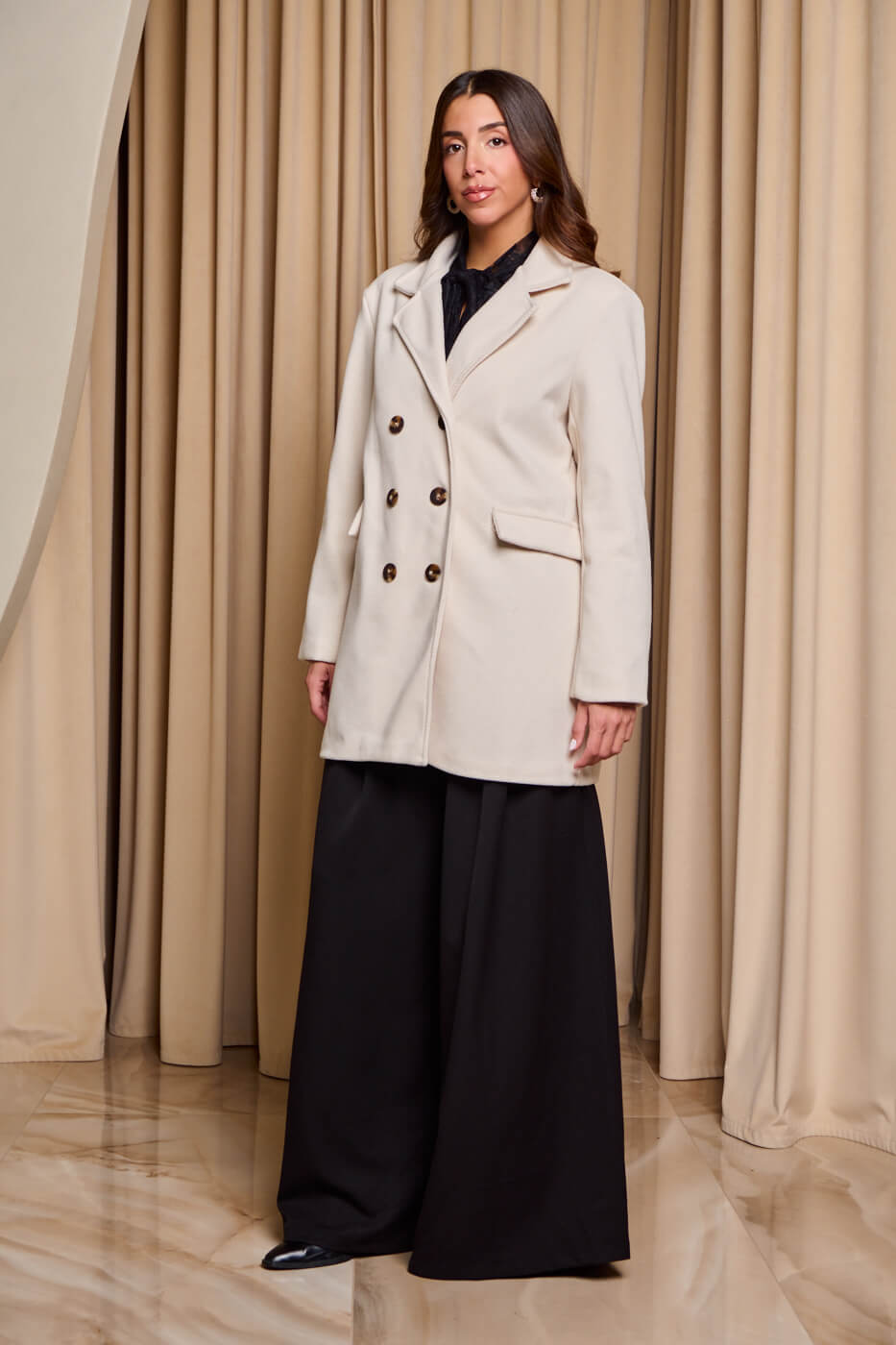 Παλτό με πέτο γιακά μπεζ