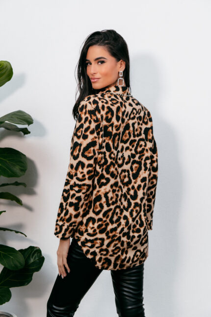 Πουκάμισο εμπριμέ ροζ-ιβουάρ, σε σατινέ ύφασμα, με μακρύ μανίκι και μανσέτα, φαρδιά στο τελείωμα με δύο κουμπιά. Με πέτο γιακά και κουμπιά από φίλντισι. Για όλες τις ώρες της ημέρας.