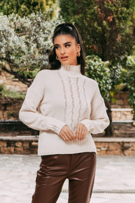 Πουκάμισο εμπριμέ ροζ-ιβουάρ, σε σατινέ ύφασμα, με μακρύ μανίκι και μανσέτα, φαρδιά στο τελείωμα με δύο κουμπιά. Με πέτο γιακά και κουμπιά από φίλντισι.