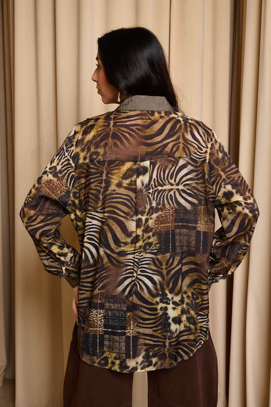 Πουκάμισο με animal print και σειρές από χρυσά στρας χακί