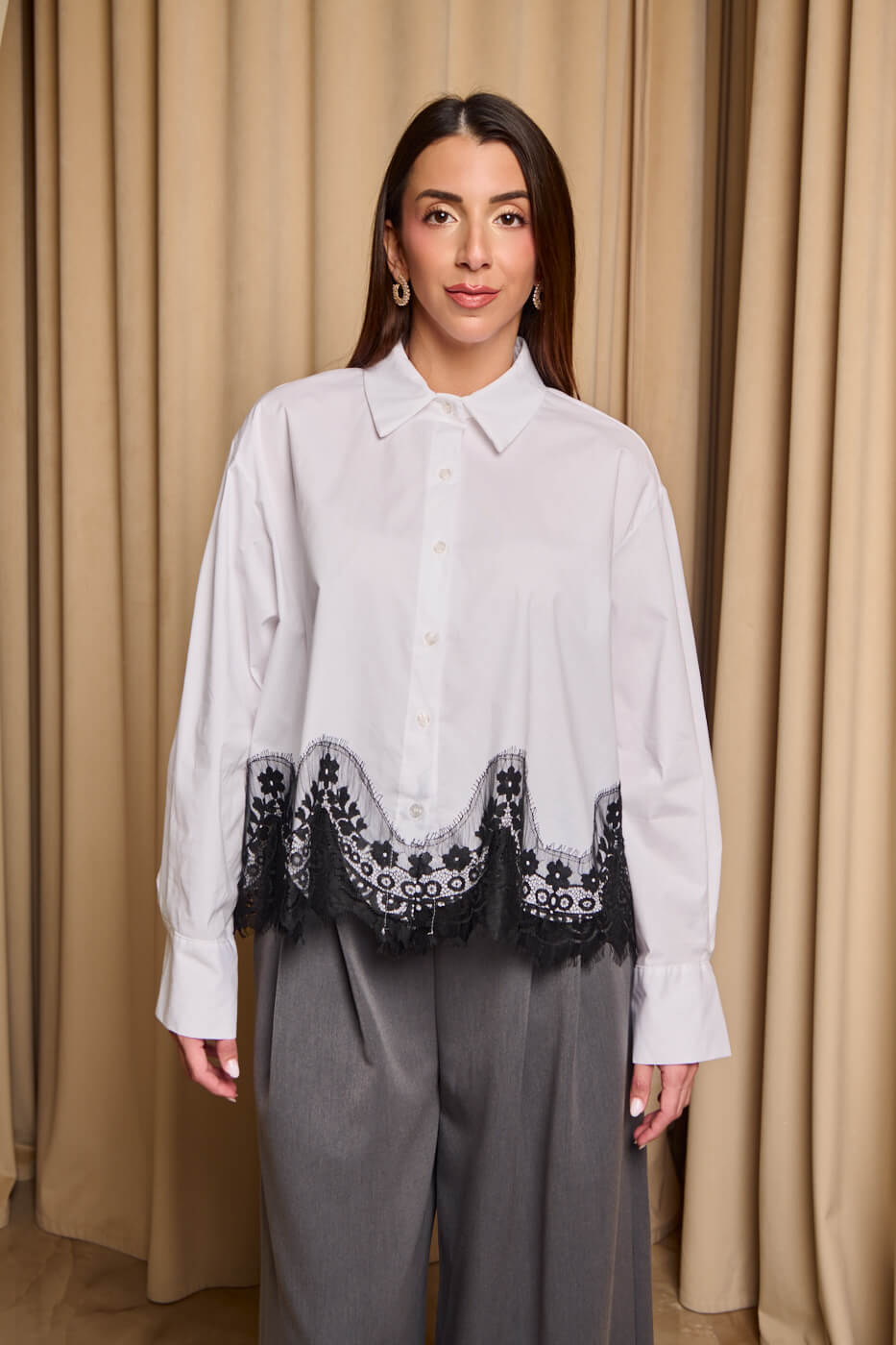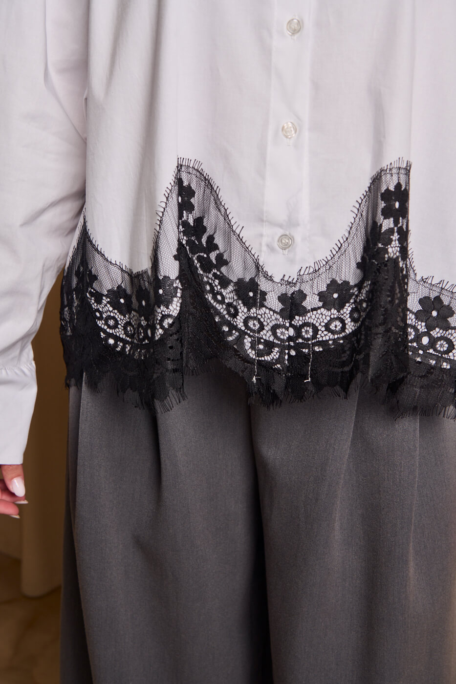 Πουκάμισο με σχέδιο δαντέλα στο κάτω μέρος λευκό