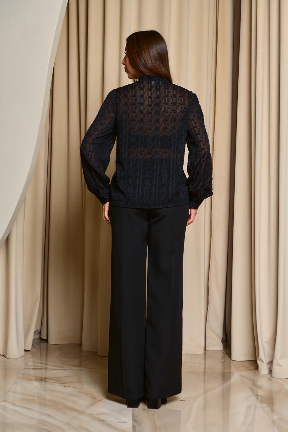 Πουκάμισο δαντελένιο με κορδέλα στο λαιμό μαύρο