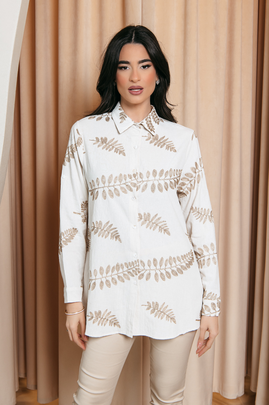 Πουκάμισο oversized εκρού με χρυσό κέντημα