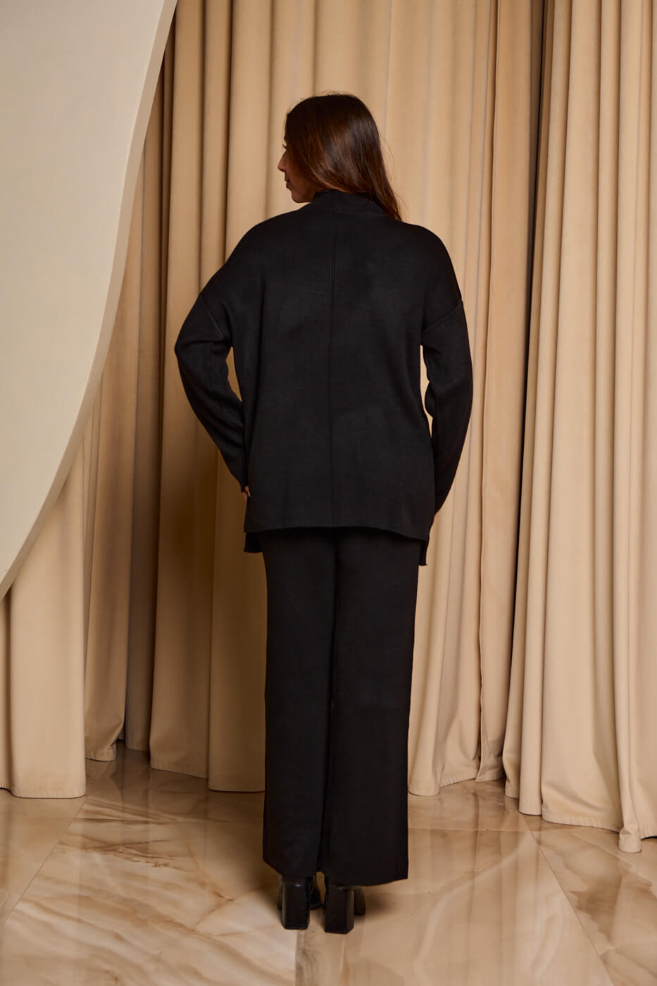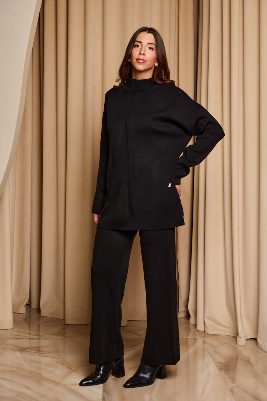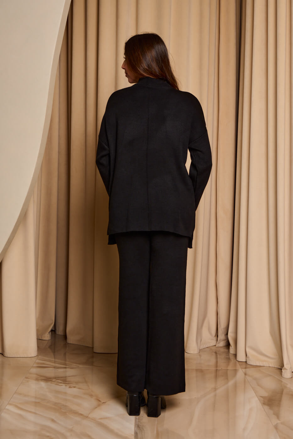 Σετ πλεκτό μπλούζα mock neck – παντελόνι μαύρο