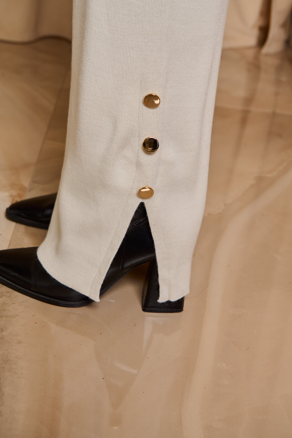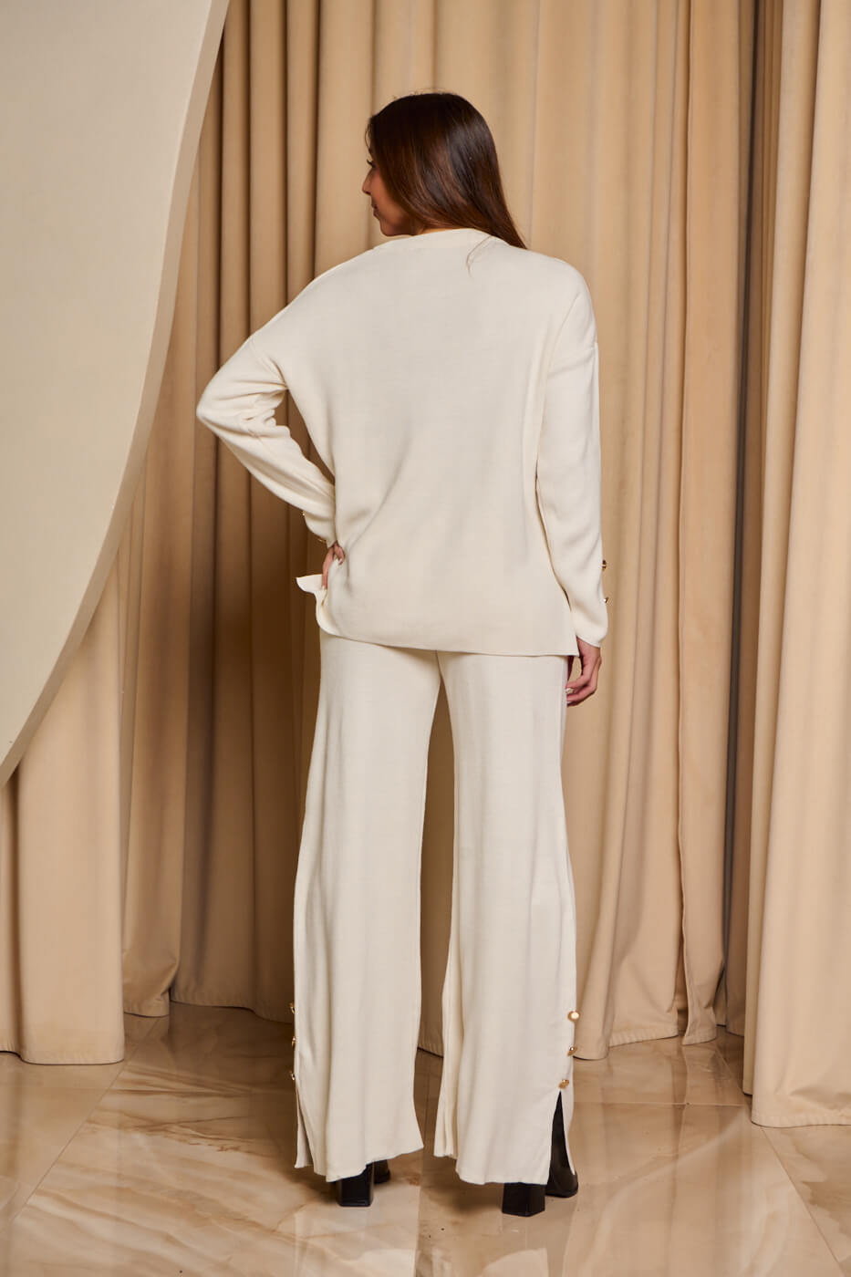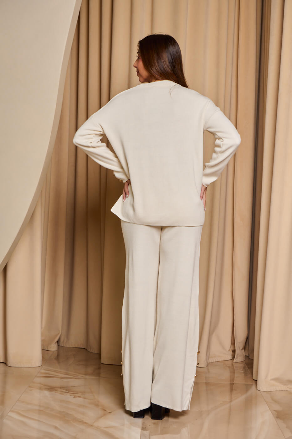 Σετ πλεκτό μπλούζα – παντελόνι με διακοσμητικά χρυσά κουμπιά μπεζ
