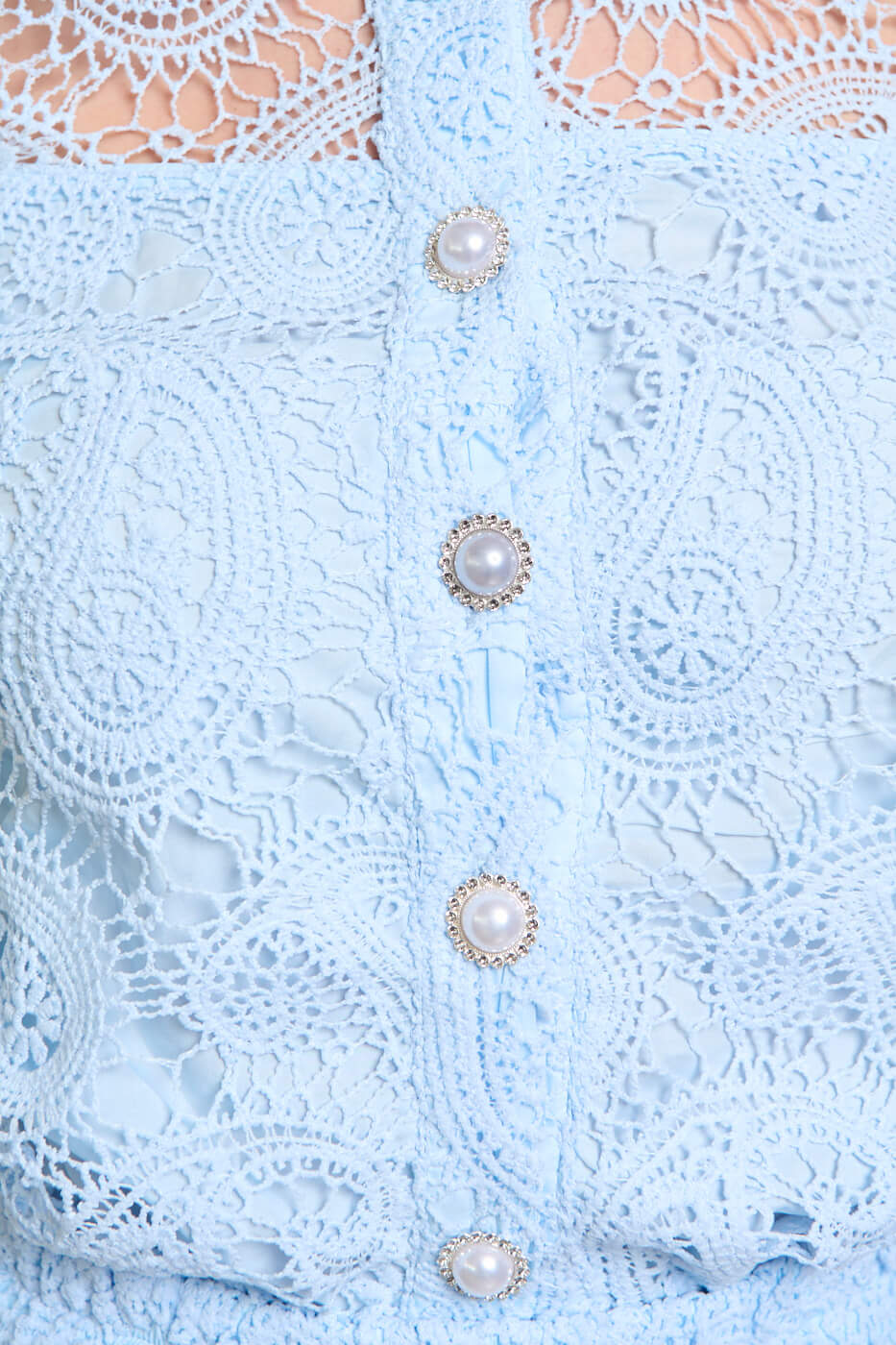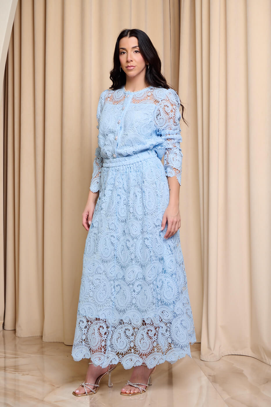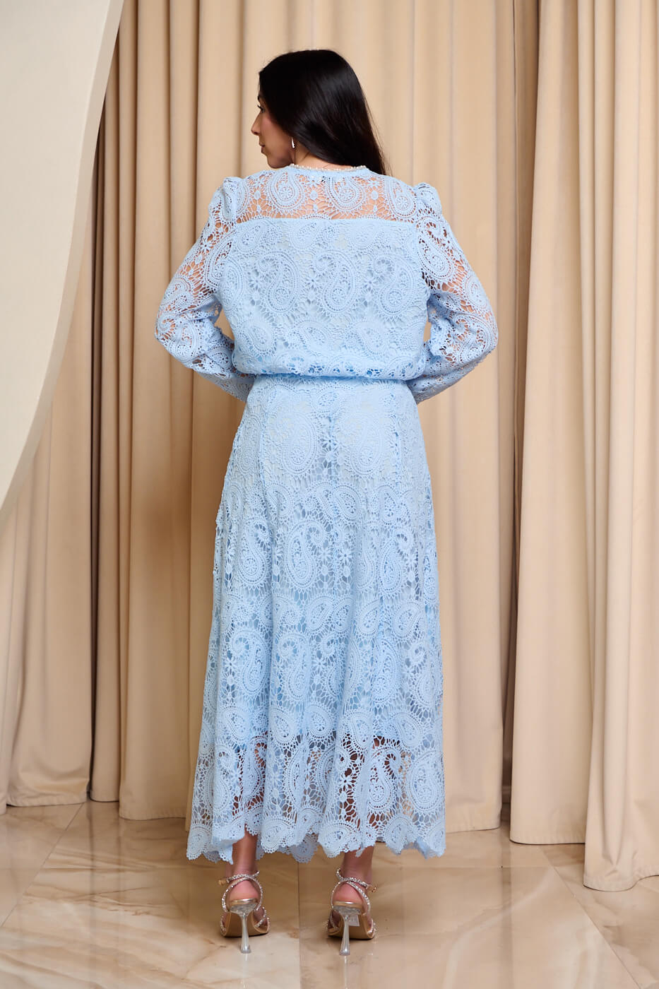 Σετ πουκάμισο – φούστα με δαντέλα και πέρλες baby blue