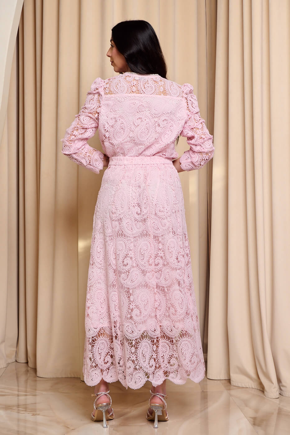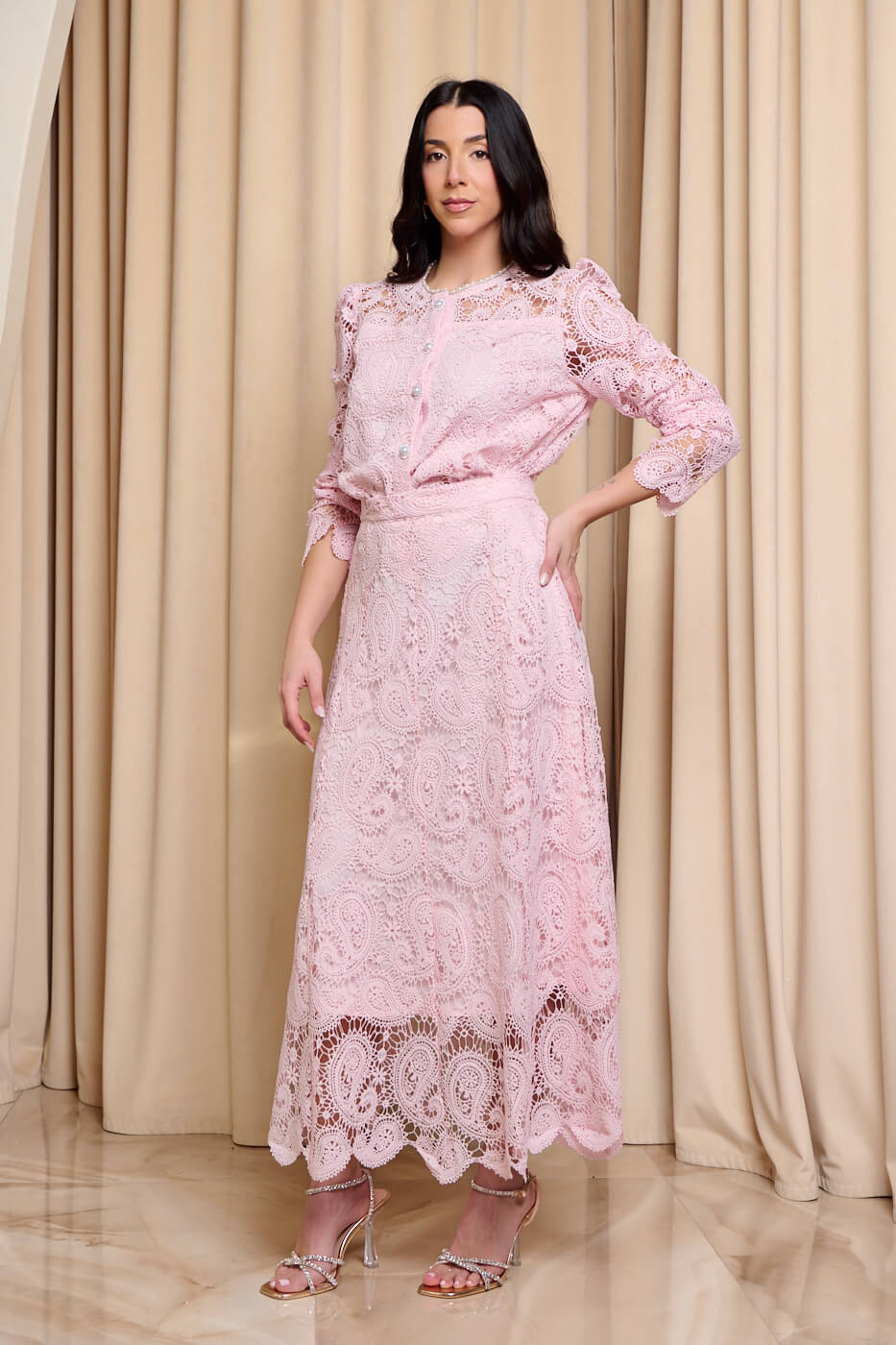 Σετ πουκάμισο – φούστα με δαντέλα και πέρλες baby pink