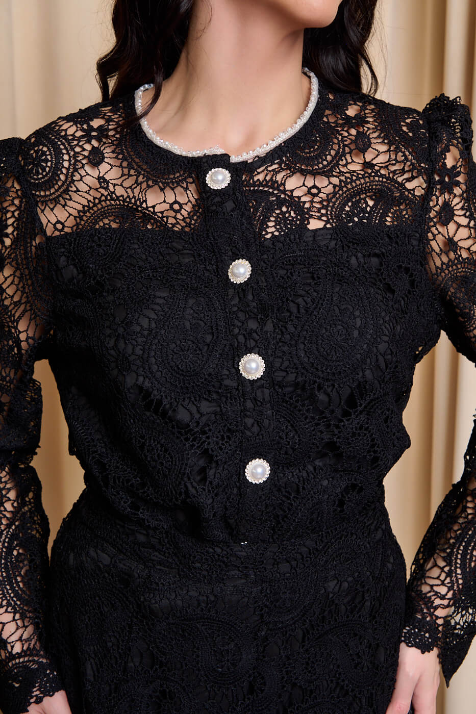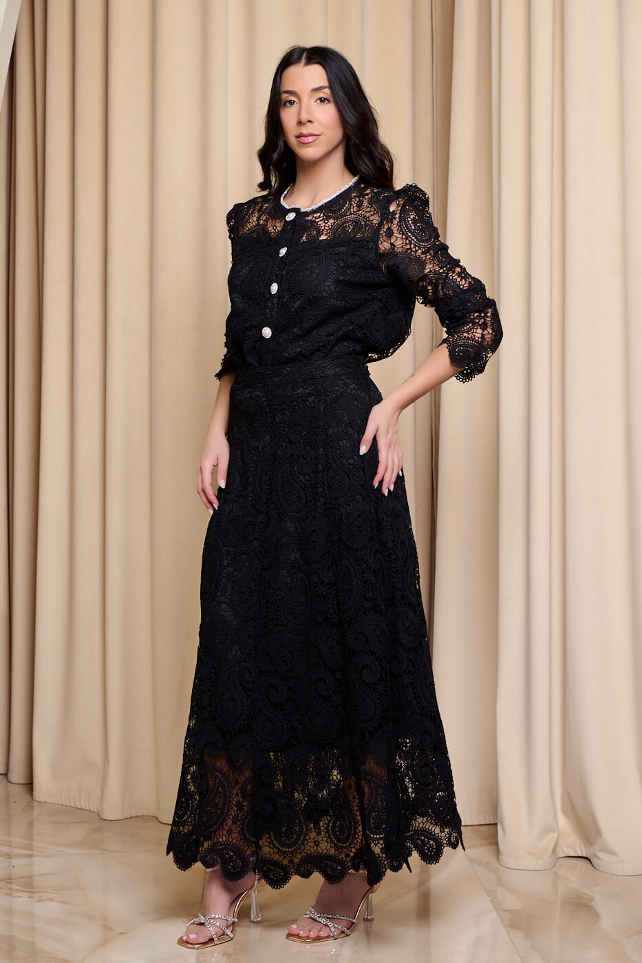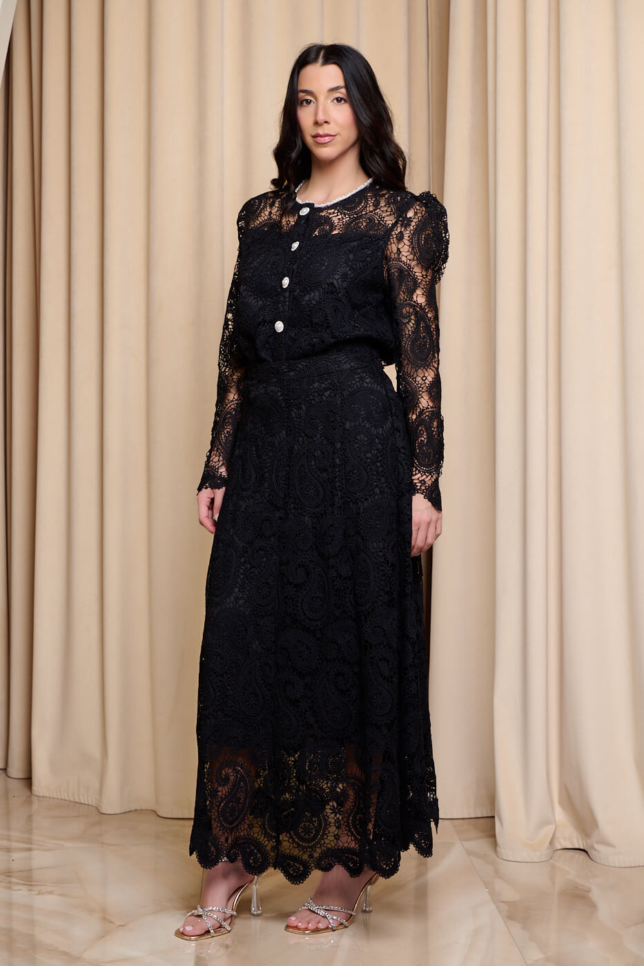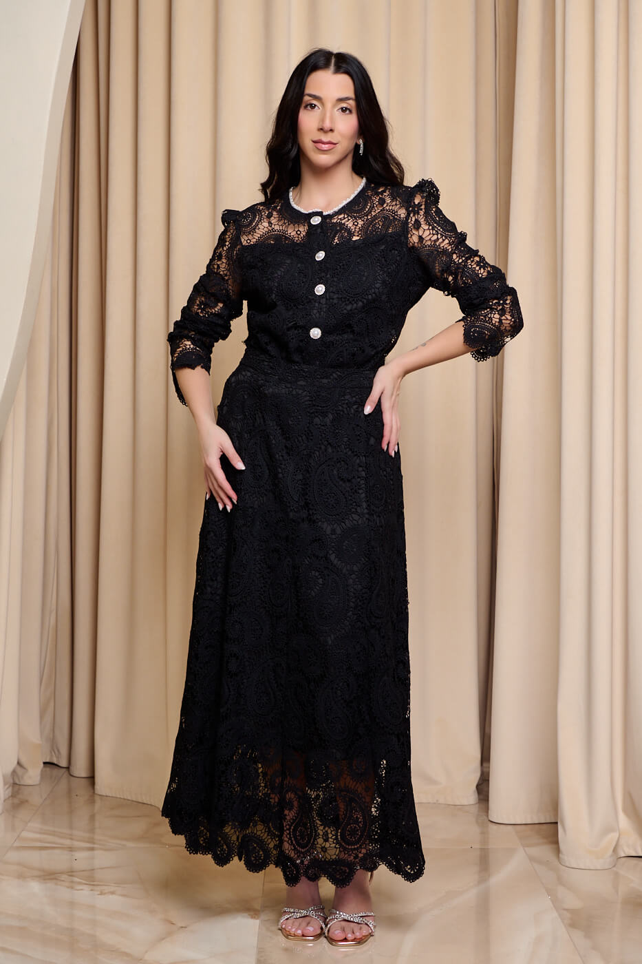 Σετ πουκάμισο – φούστα με δαντέλα και πέρλες μαύρο