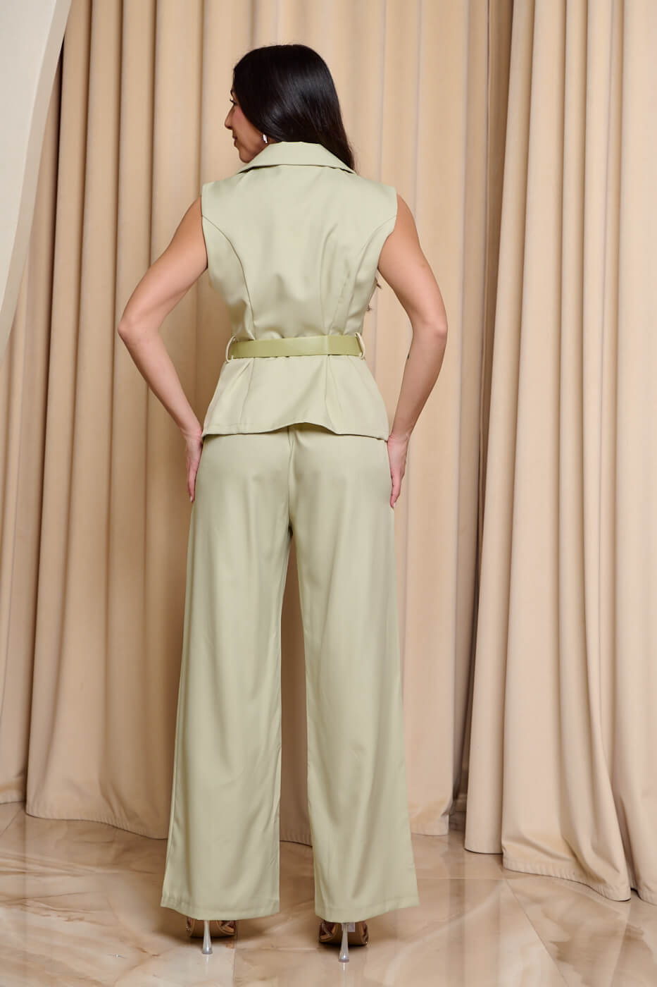 Σετ γιλέκο – παντελόνι με ζώνη μέντα