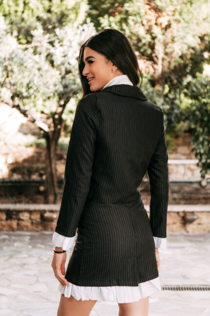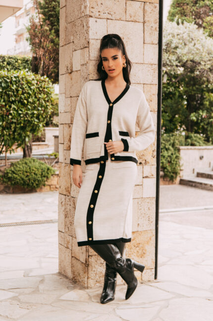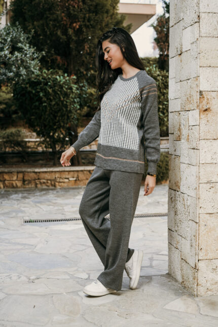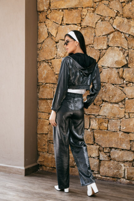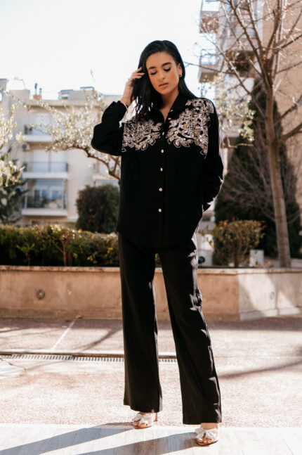 Σετ ροζ μπλούζα – σορτς, με σχέδιο λουλούδια. Η μπλούζα είναι σιθρού με μακριά μανίκια και λάστιχο στο τελείωμα. Διαθέτει V άνοιγμα με διακοσμητικό κορδόνι και εσωτερικό φανελάκι. Το σορτς είναι ψηλόμεσο με τσέπες δεξιά και αριστερά. Διαθέτει θηλύκια και εσωτερική φόδρα. Κλείνει με φερμουάρ πίσω. Ένα σετ για όλες τις ώρες της ημέρας.