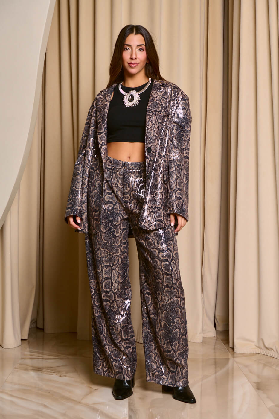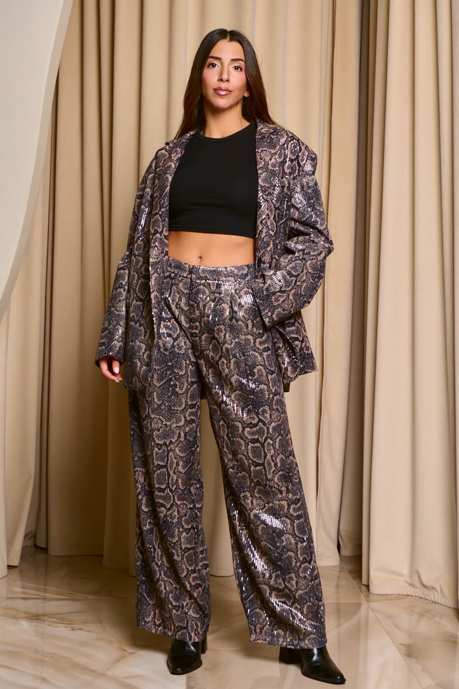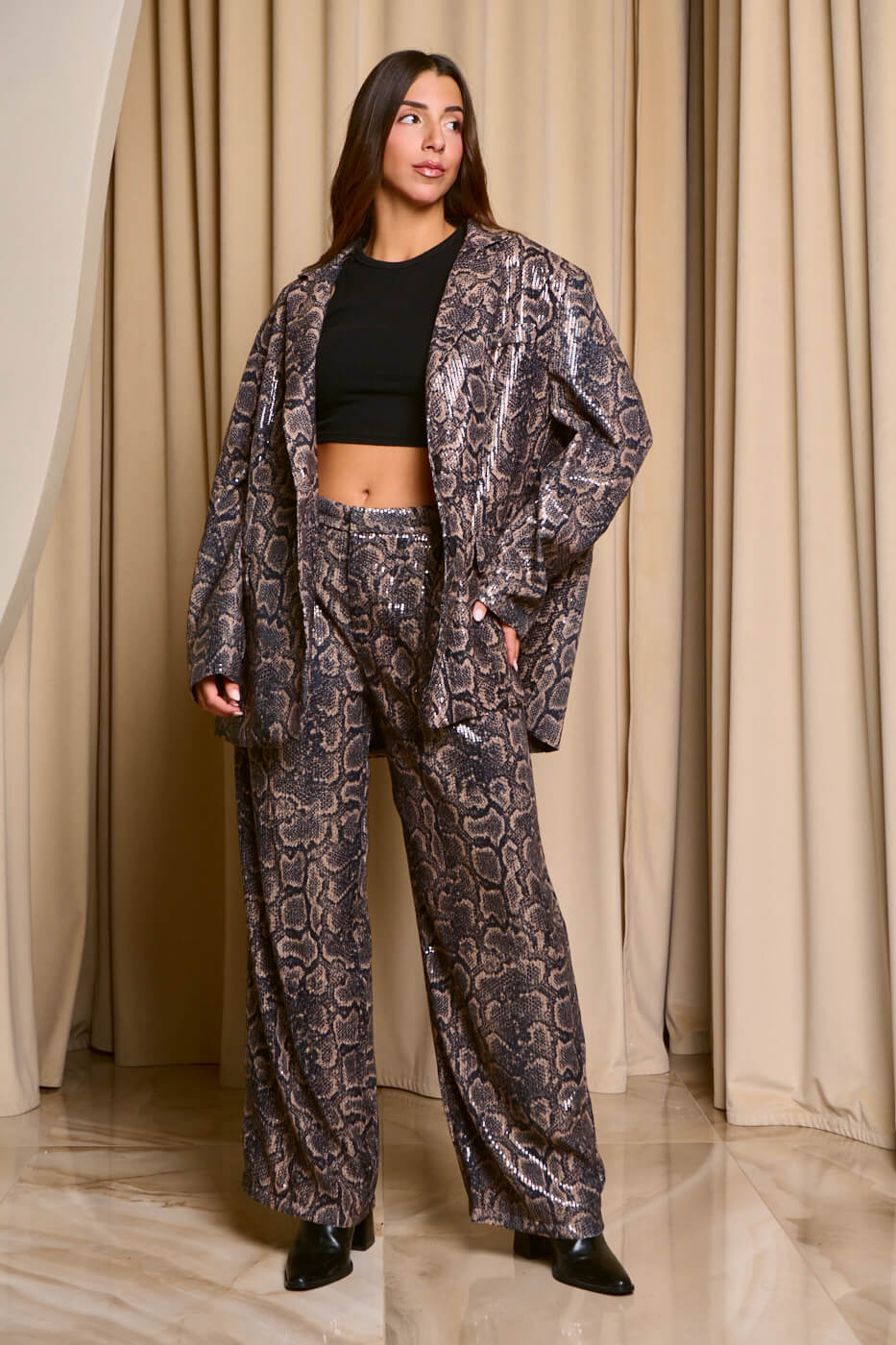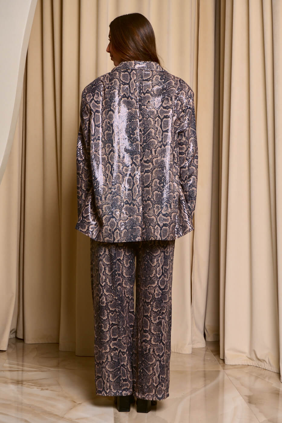 Σετ σακάκι – παντελόνι με παγιέτες snake print