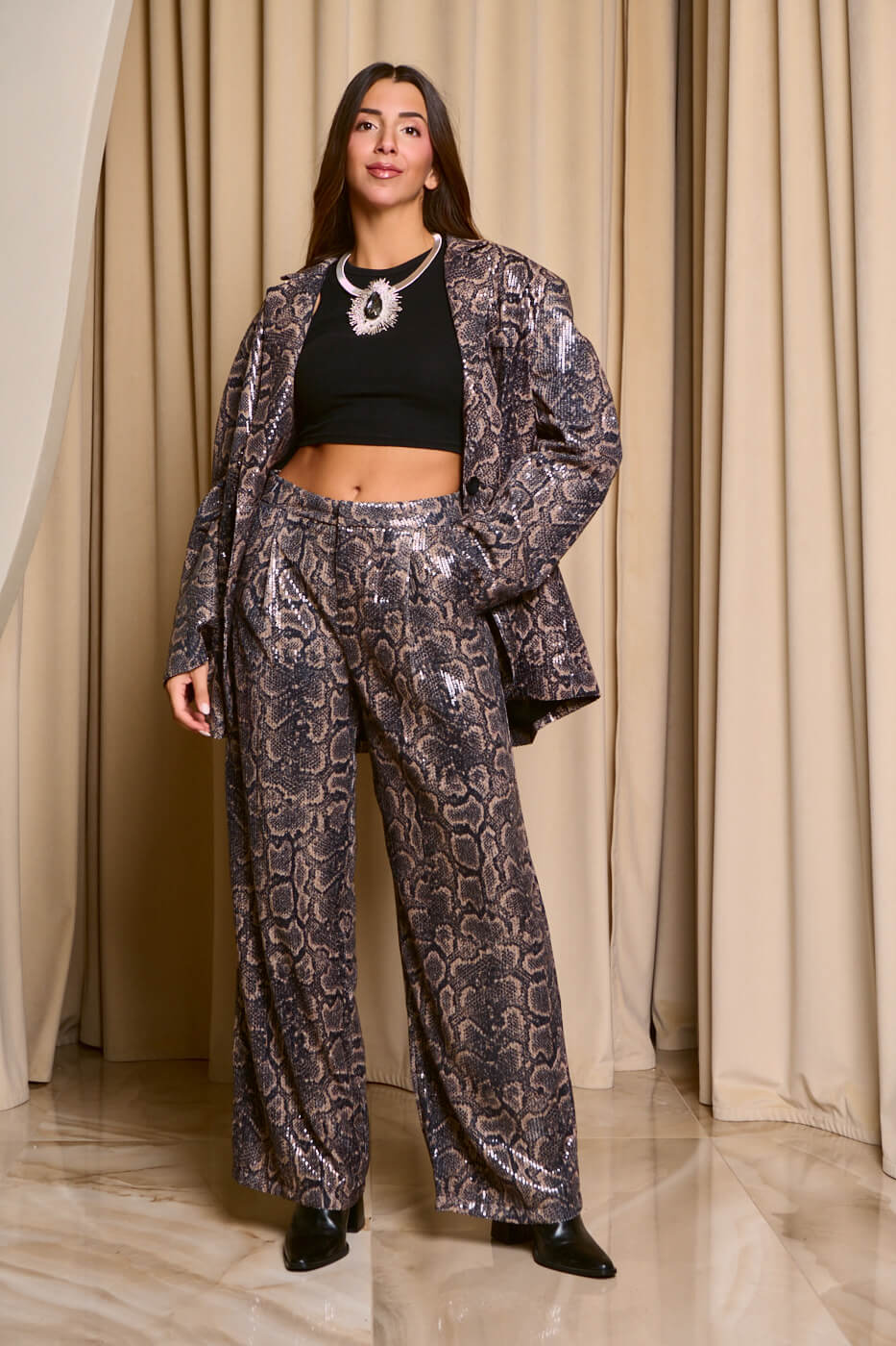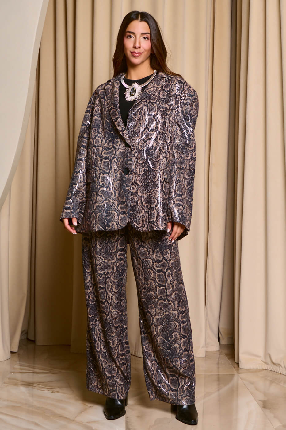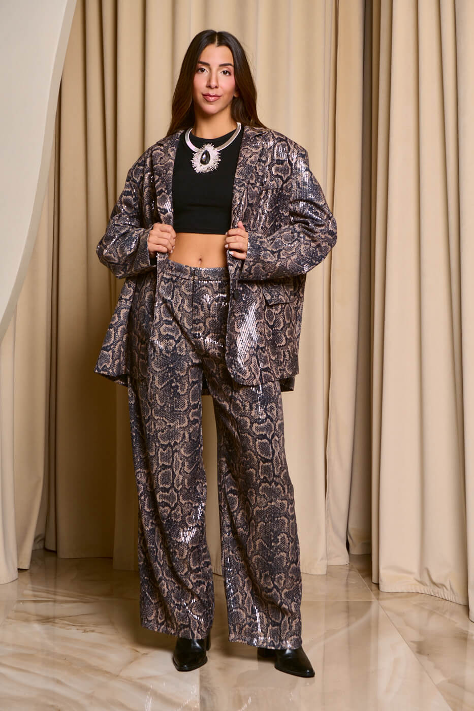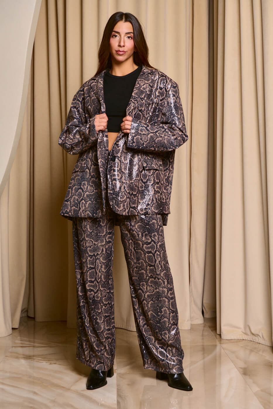 Σετ σακάκι – παντελόνι με παγιέτες snake print