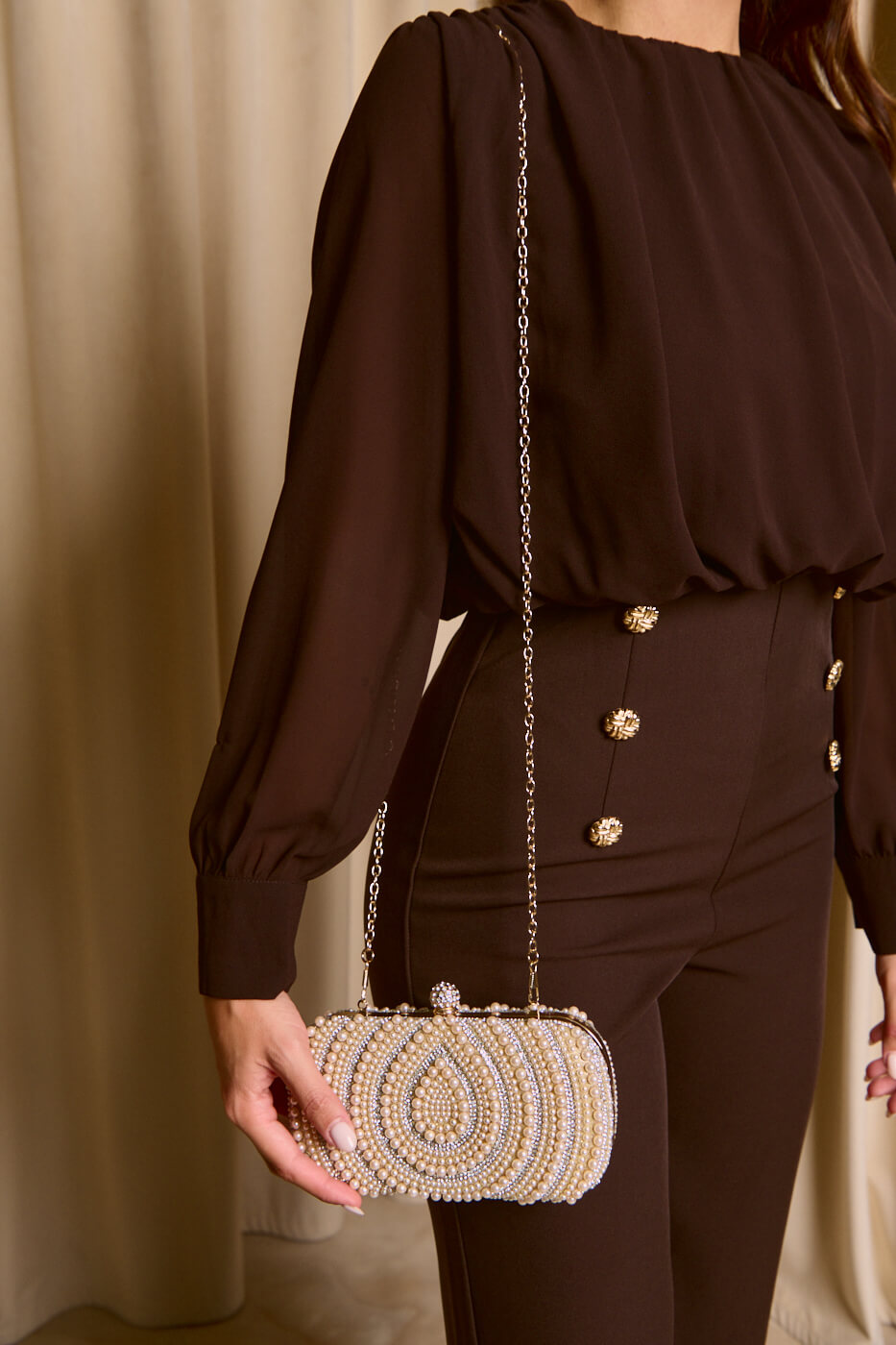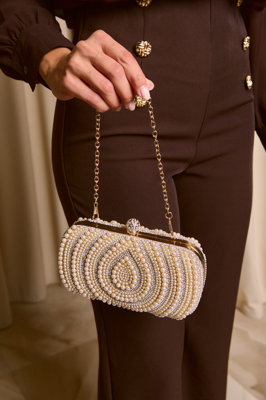 Tσάντα clutch με Πέρλες και Κρύσταλλα Σαμπανιζέ