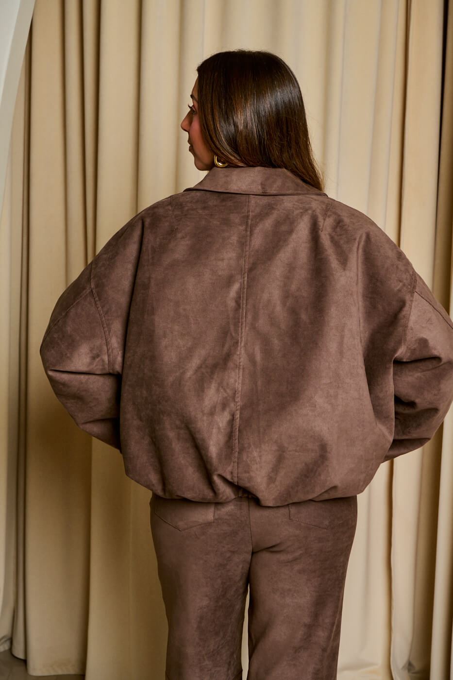 Τζάκετ bomber καστόρι με γιακά σκούρο καφέ
