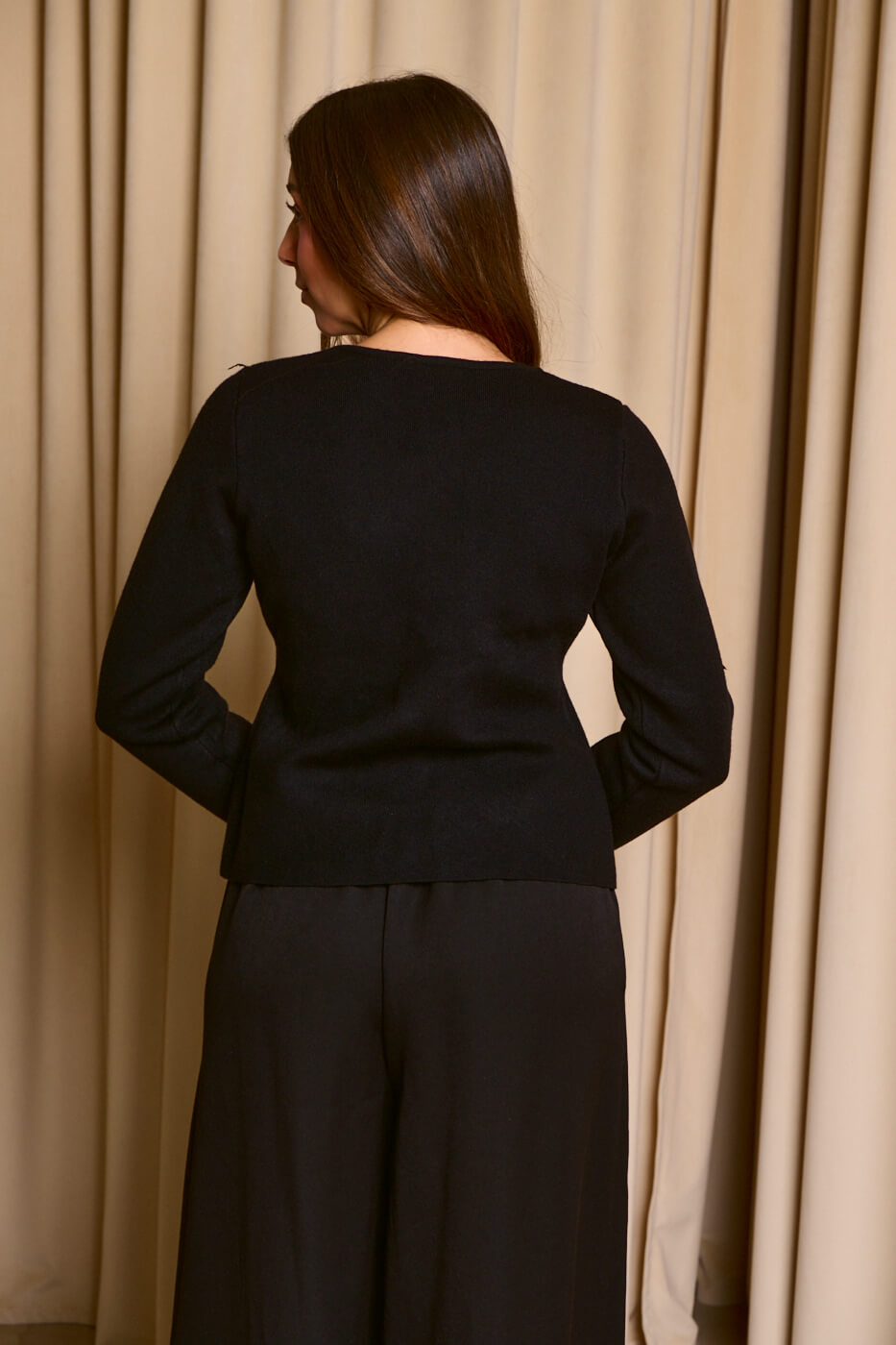 Ζακέτα πλεκτή με μεγάλα κουμπιά κοσμήματα μαύρη
